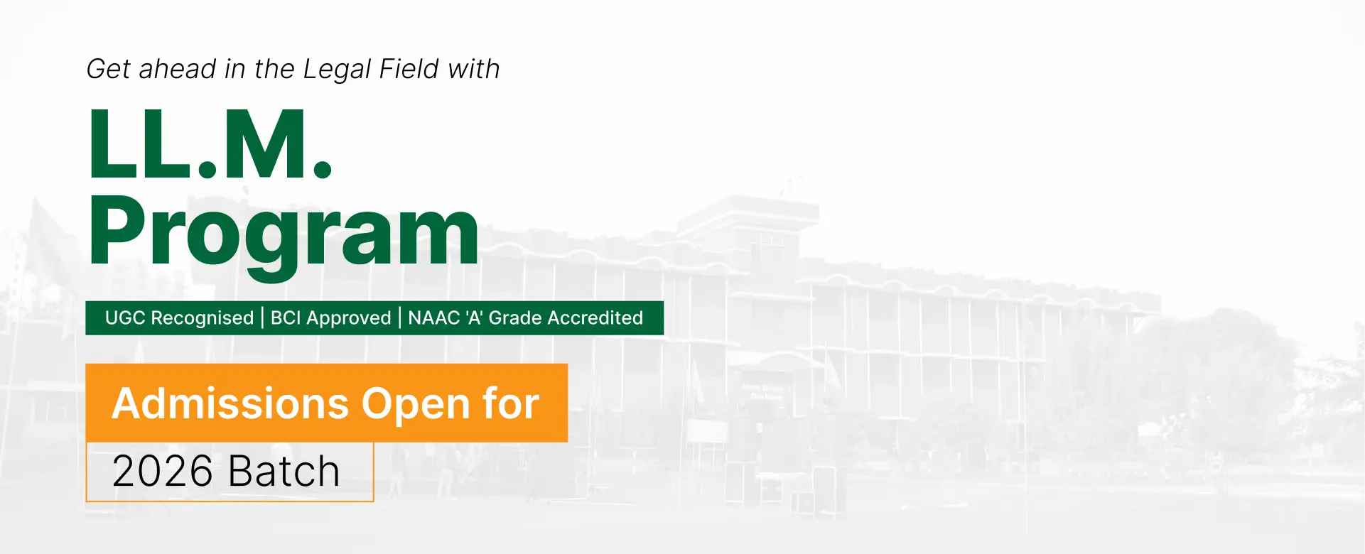 Our LL.M. program is open to candidates who hold a law degree of at least 3/5 years duration with a minimum of 50% marks from a UGC-recognized university. Our program is designed to provide students with advanced knowledge of specific areas of law, enabling them to excel in their chosen fields.